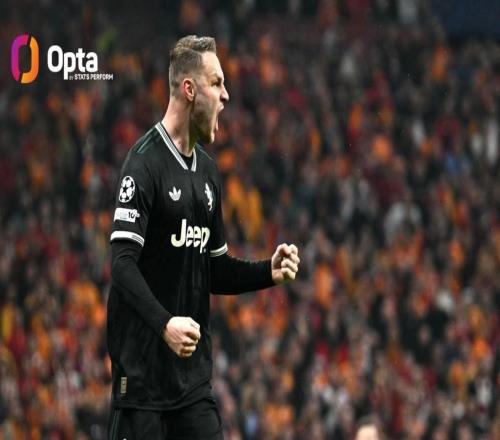 创纪录,库普成欧冠91年改制后尤文首位淘汰赛双响的中场球员