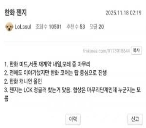 韩网小道:HLE中辅续约、全力追逐CanyonGEN找LCK打野