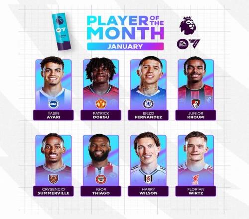 北京时间2月5日,英超官方公布了1月最佳球员的候选名单,其中多古、恩佐、维尔茨等球员在列。