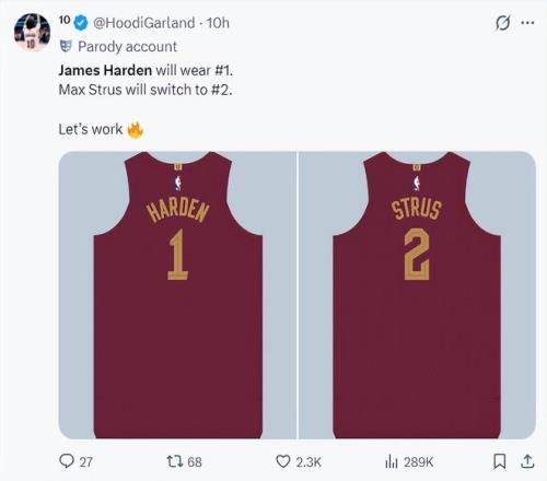 北京时间2月7日,根据球衣博主的爆料,骑士队的斯特鲁斯愿意为哈登让出1号球衣,斯特鲁斯会改穿2号球衣。哈登在对阵国王的比赛中是出战存疑,哈登的骑士首秀可能会继续延期。