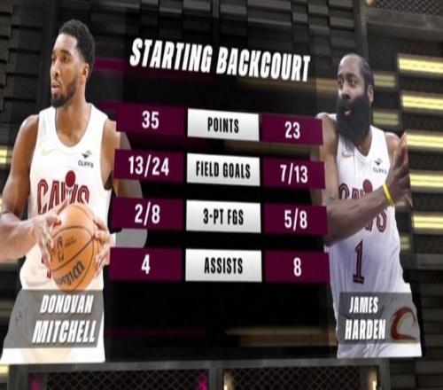 在本场比赛之后,转播方晒米切尔+哈登合体首战数据:两人合砍58分12助攻。