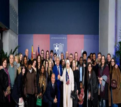 世体报道拉波尔塔本届主席卸任日:温情满满,与球员家属合影