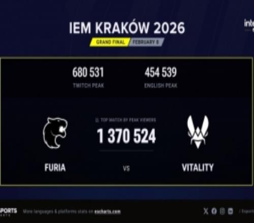 电竞体育2月9报道 根据Esports Charts网站的数据统计,IEM克拉科夫的最高收视人数为137万人,发生在Vitality对阵FURIA的总决赛中。这一数据超越了2025年的IEM卡托维兹(129万人)成为历史上收视率最高的非Major赛事,同时在历史收视率总榜中也能排名第8位!