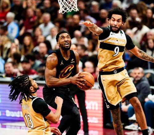 奇才队前往客场挑战骑士队,两队都在赛季中期完成了大交易,境遇却有天壤之别。奇才队引进了特雷杨和浓眉,哥俩却因伤高挂免战牌,摆烂依然是奇才队本赛季的主旋律。快船队引进了哈登,哈登与米切尔组成东部最强后场双枪,骑士队连战连捷,争冠是他们的共同夙愿。此役,奇才首发为乔治+库利巴利+沃特金斯+卡林顿+特雷约翰逊,骑士首发为哈登+米切尔+阿伦+泰森+梅里尔。