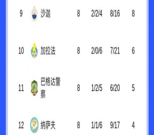 大家只从东亚区来比较,其实如果放到西亚区,海港这个成绩也是西亚区倒数第一。看上图,排名西亚区倒数第一的纳萨夫也是4分,其净胜球为-8。因此,海港在前8轮战罢,其积分排名是全亚冠精英赛24支球队中最低的。