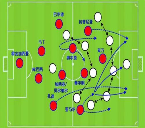 巴萨的这套高位逼抢踢法下,莱万和拉菲尼亚是很重要的。拉菲尼亚的积极性和投入度是有目共睹的,莱万的优势在于他的身高腿长和做动作的柔韧性。