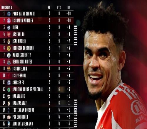 积分与净胜球均相同,拜仁晒欧冠积分榜预热下一轮对阵巴黎