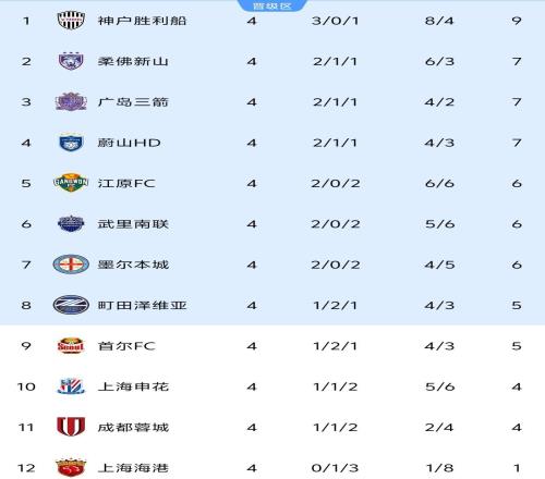 亚冠精英赛4轮积分榜:中超3队包揽倒数3名,J联赛劲旅9分领跑